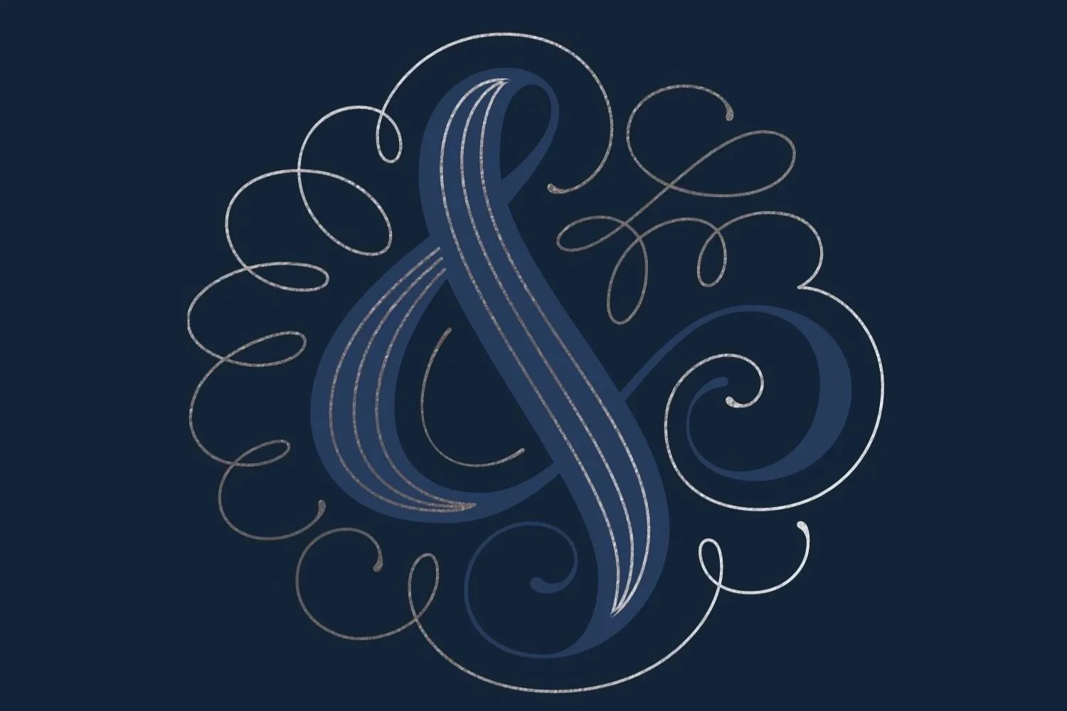 This elegant ampersand was originally hand lettered and later refined into a clean, scalable vector illustration. Inspired by classic calligraphy, the piece combines bold, structured strokes with delicate flourishes to create a visually dynamic composition.