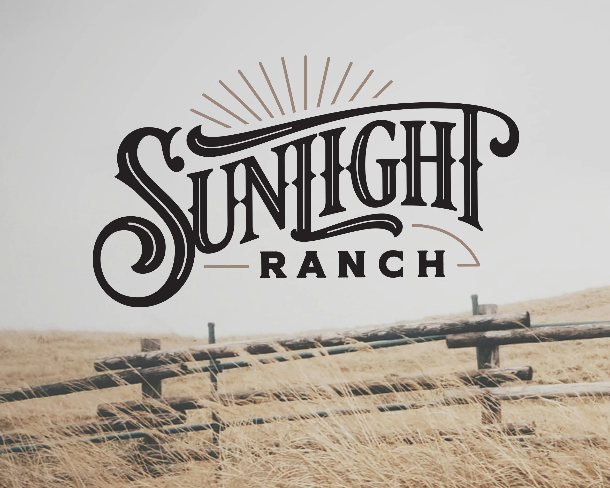 Custom-lettered logo ideation for Sunlight Ranch, a not-for-profit foundation in Merced County, California. The design captures the warmth and openness of the ranch’s landscape while reflecting its mission to connect people with the great outdoors.